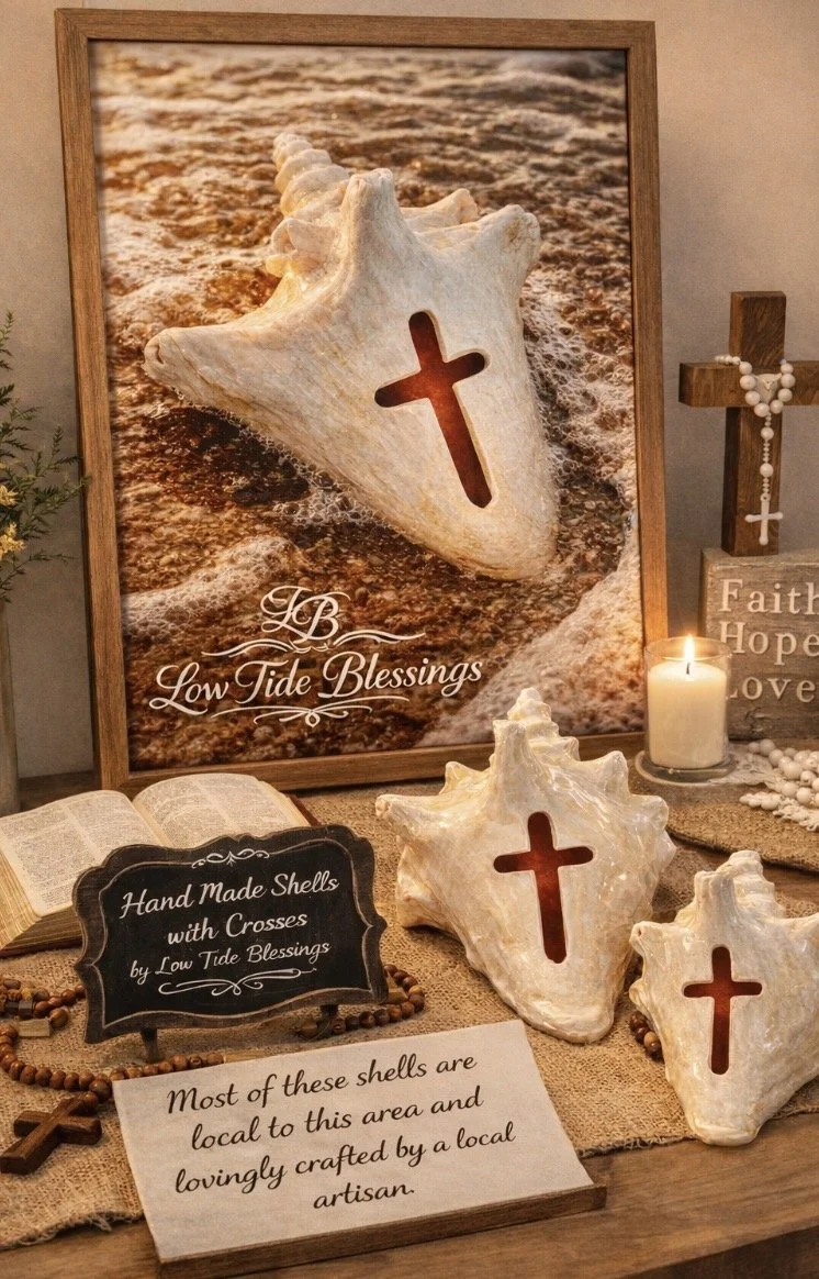 Hey There! Eric Taylor Here. Real Person, no AI or smoke and mirrors. Just a small town guy who really enjoys creating small, unique one of a kind blessings. The fun part for me is leaving my small shells on the beach or around the area for people to find and keep as a souvenir. I install a small QR code with my FB page page in each one in hope that a new friend will reach out and let me know where they found it. I also sell many of my nicer shells as you can see. Thanks so much for stopping by. God Bless